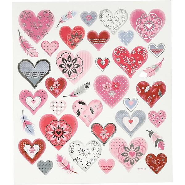 Creativ Company Stickers Hjärtan 7 Stickers, hjärtan, 15x16.5 cm, 1 ark 27191