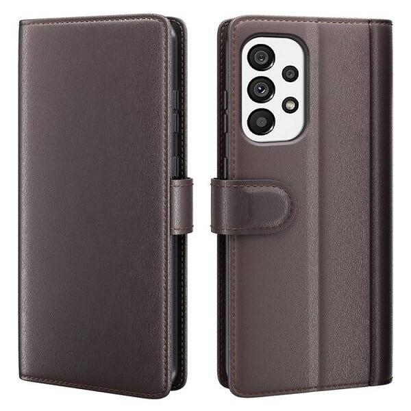 Folio Flip Äkta Läder Plånboksfodral Galaxy A53 5G Brun