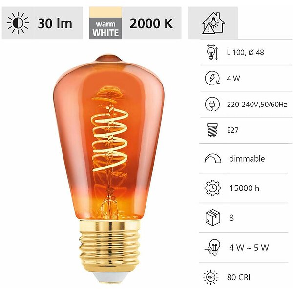 EGLO LED-glödlampa ST48 Spiral 4W 2000K Dimmable Copper E27