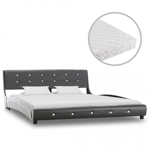 vidaXL Säng med madrass grå konstläder 160x200 cm