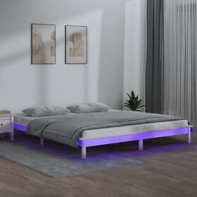 vidaXL Seng Ramme LED vit 150x200 cm massivt trä