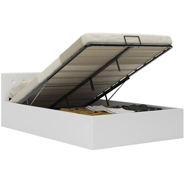 vidaXL Seng Ramme hydraulisk förvaring vit konstläder 140x200 cm