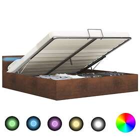 vidaXL Seng Ramme med hydraulisk förvaring med LED brun tyg 160x200 cm