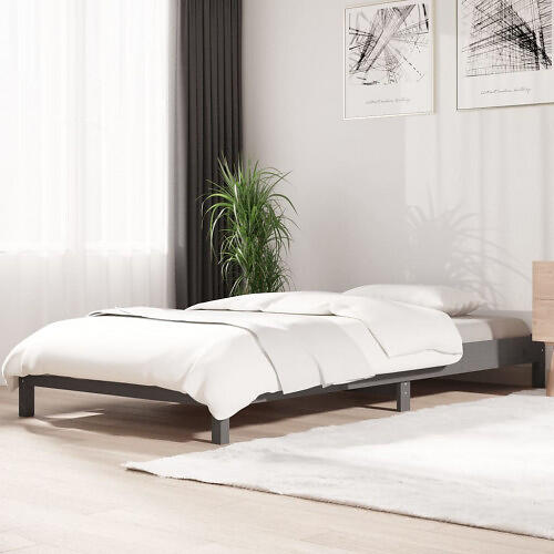 vidaXL Stapelbar säng grå 90x190 cm massivt furuträ