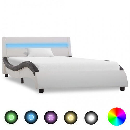 vidaXL Seng Ramme med LED vit och svart konstläder 90x200 cm