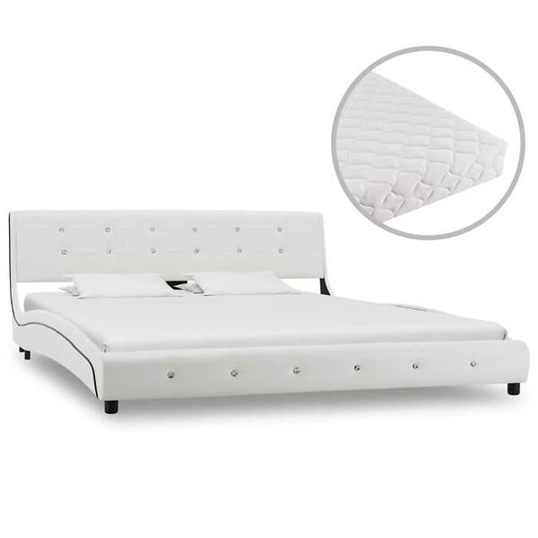 vidaXL Säng med madrass vit konstläder 160x200 cm