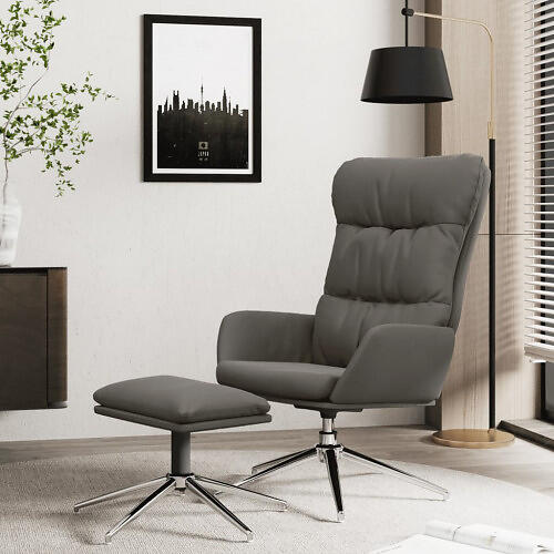 vidaXL Vilstol med pall grå äkta läder och konstläder