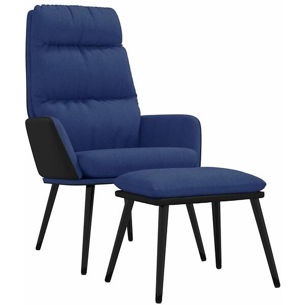 vidaXL Vilstol med pall blå tyg och konstläder