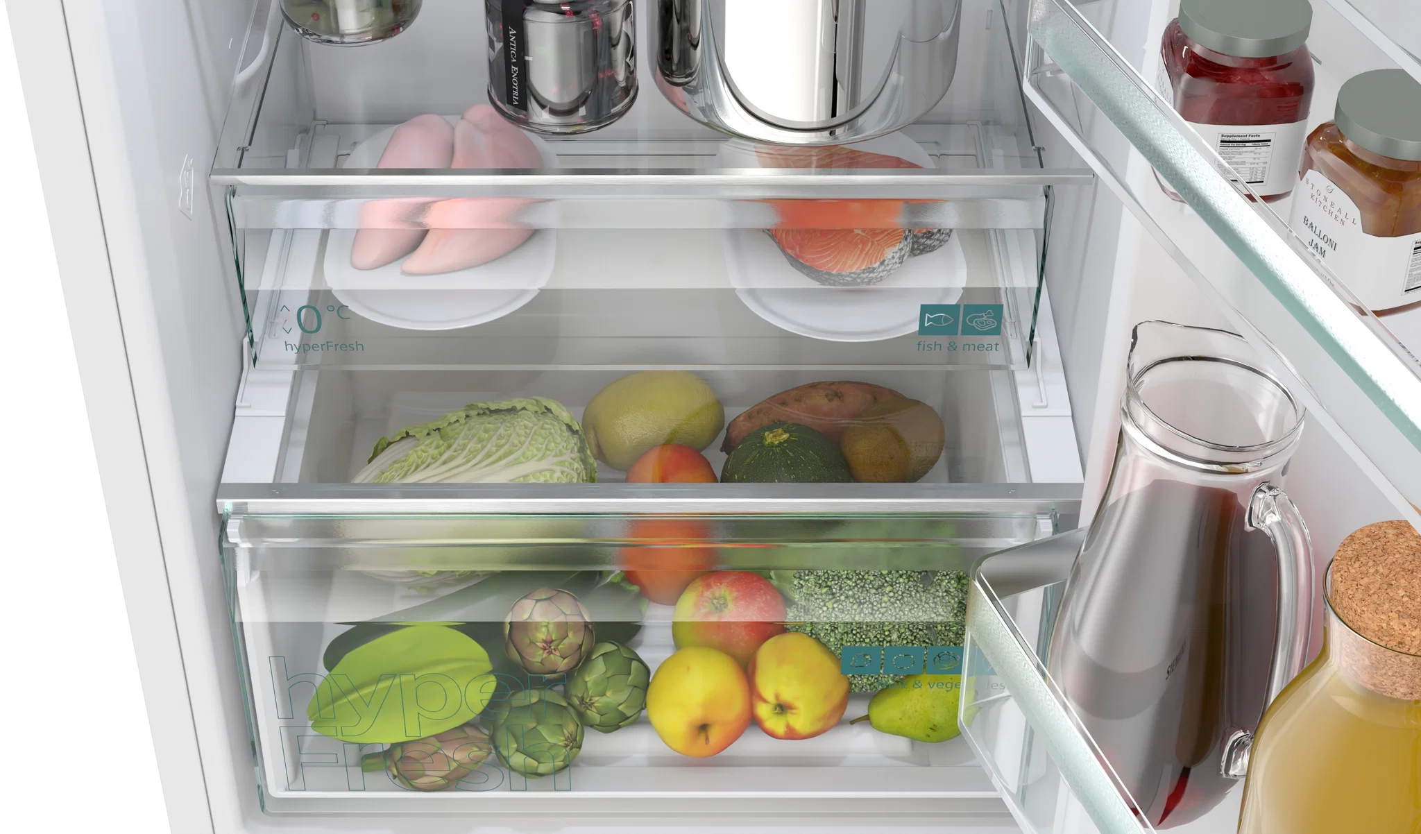 Døralarm, Hurtig køling, Isdispenser, Hurtig nedfrysning, 0°C rum (ZeroZone/Chef Zone), Flaskeholder, Isbakke, Justerbar temperaturzone, Indbygget LED-belysning, Frostfrit køleskab