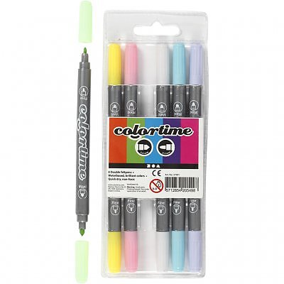 Colortime dubbeltusch, spets 2.3+3.6 mm, pastellfärger, 6 st./ 1 förp.