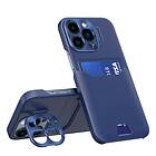 iPhone 14 Max Skal Korthållare Läder Kickstand Blå