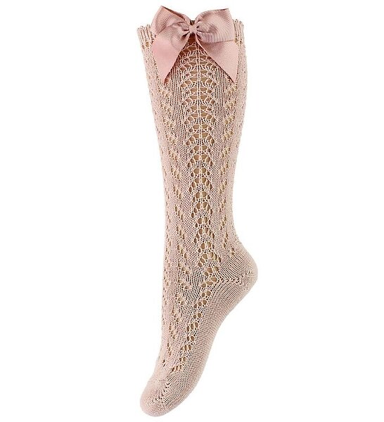 Cóndor Perle openwork knee high socks with bow Old Rose