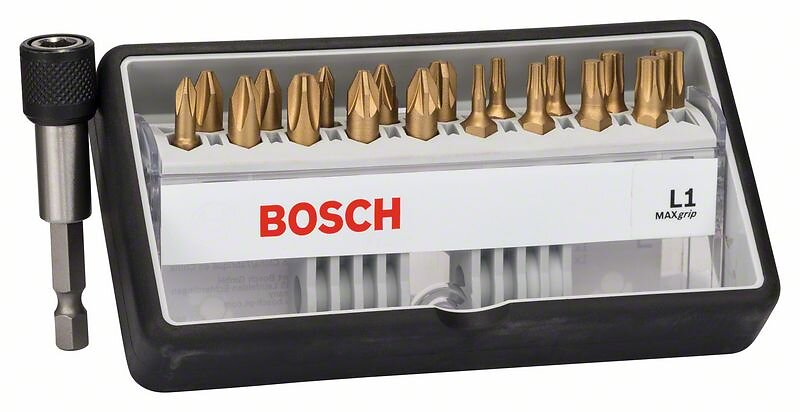 Bosch 25 -delar skruvbitsats Max Grip; PH; PZ; T; 18 st. magnet-bitshållare