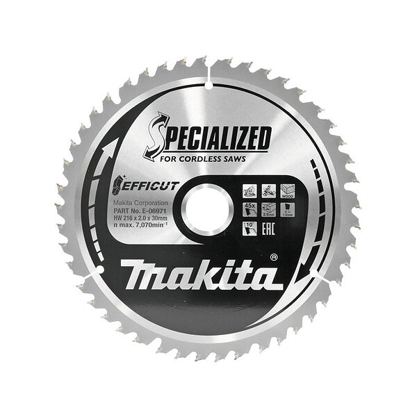 Makita Sågklinga för trä Efficut; 216x1.5x30 mm; Z80; 10°