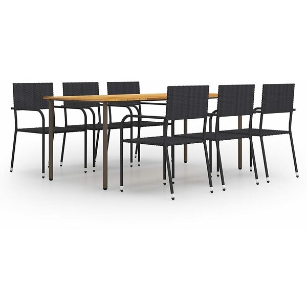 vidaXL Garden Dining Set 7 Piece Rattan Black Poly Outdoor Furniture