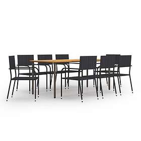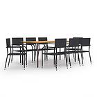vidaXL Garden Dining Set 9 Piece Black Poly Rattan Outdoor Table and Chair