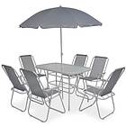 vidaXL Outdoor Dining Set 8 Piece Textilene Grey Garden Table Chairs Umbrella Blue