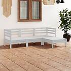 vidaXL Solid Pinewood Garden Lounge Set 4 Piece White Wooden Sofa Seating