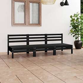 vidaXL Solid Pinewood Garden Lounge Set 3 Piece Black Outdoor Seating Sofa