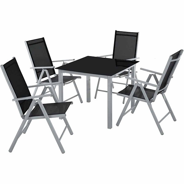 TecTake (silver/gray) Garden Table and chairs furniture set 4+1 outdoor table chairs, garden set, patio silver/gray