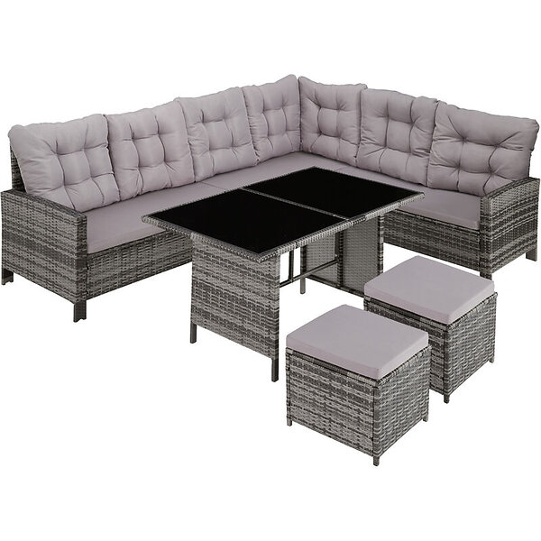 TecTake Rattan garden corner set Barletta 8 seats 1 table grey