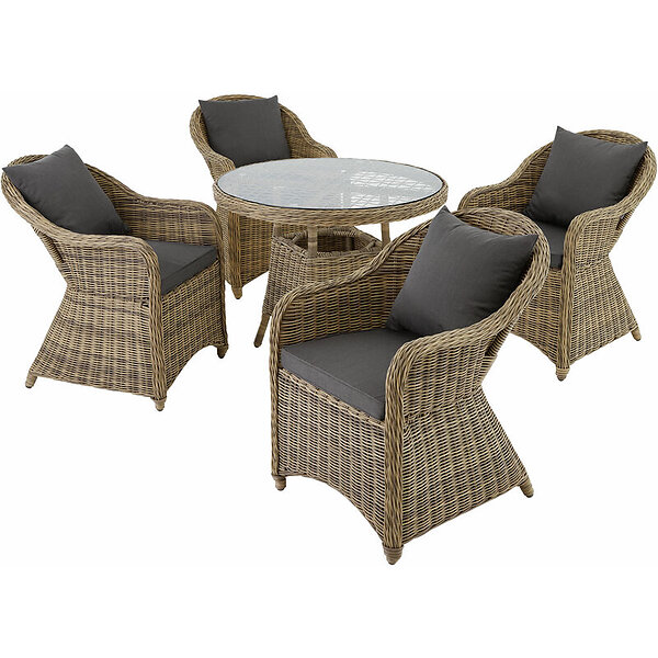 TecTake Rattan garden furniture set Zurich with 4 armchairs and table nature