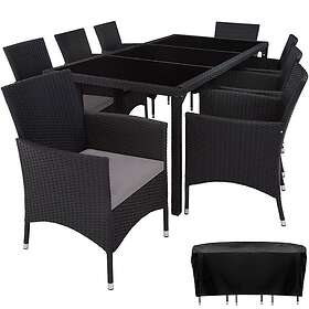 TecTake Rattan garden furniture set 8+1 with protective cover black/grey
