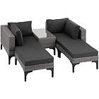 TecTake Rattan Lounge Set Bellaria 2 Chairs, Stools, 1 Side table grey