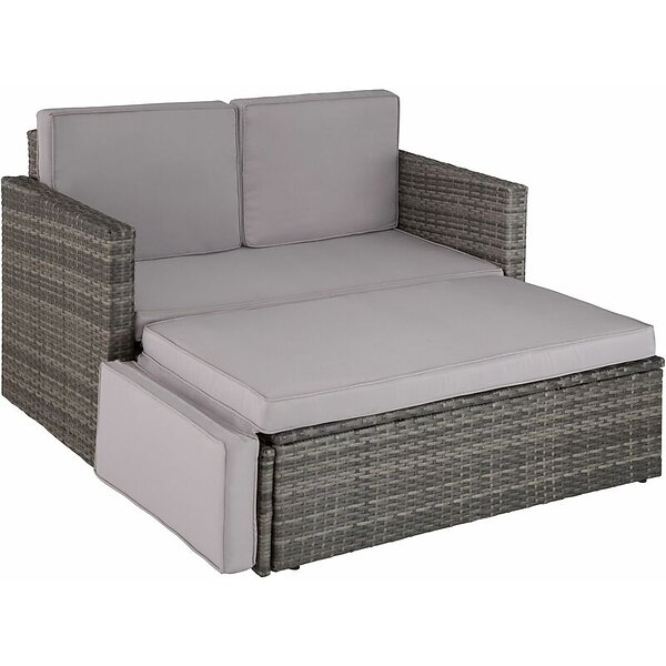 TecTake Rattan garden sofa Corfu 2 Seater, 1 Stool grey