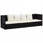 vidaXL Trädgårdsbädd med dyna och kuddar konstrotting svart