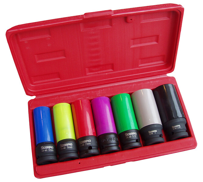 Scorpio Krafthylsor S-1207DK 1/2'' i sats 6-kant 7 delar, långa