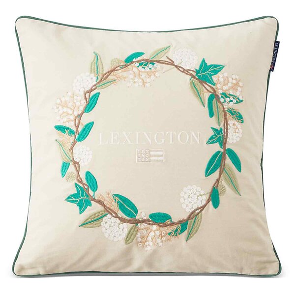 Lexington Wreath Logo Kuddfodral, 50x50 cm Beige Ekologisk bomull