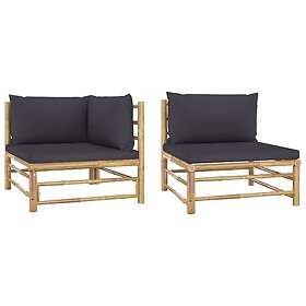 vidaXL loungesæt til haven 2 dele med mørkegrå hynder bambus