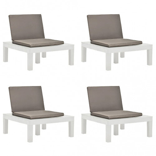 Loungefåtöljer för trädgården med dynor 4 st plast vit