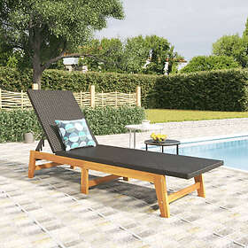 liggestol polyrattan og massivt akacietræ sort og brun