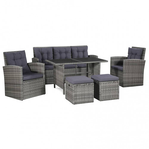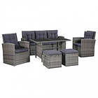 vidaXL haveloungesæt 6 dele med hynder polyrattan grå