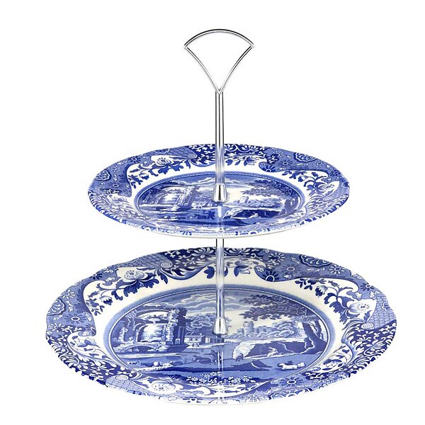 Spode Blue Italian 2-vånings Kakfat 27 cm