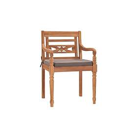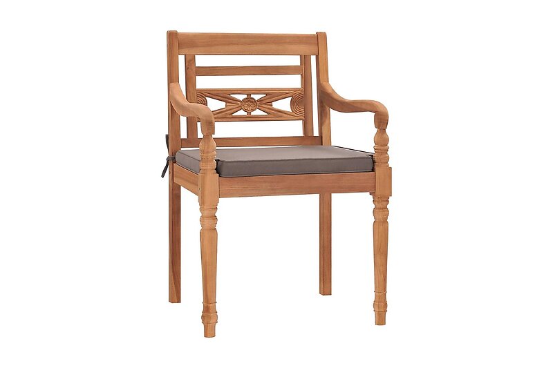 Bataviastolar 2 st med mörkgråa dynor massiv teak Brun