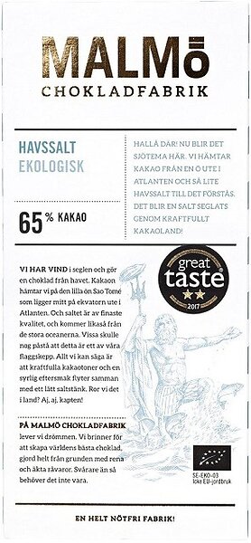 Malmö Chokladfabrik Havsalt 65% kakao 80g