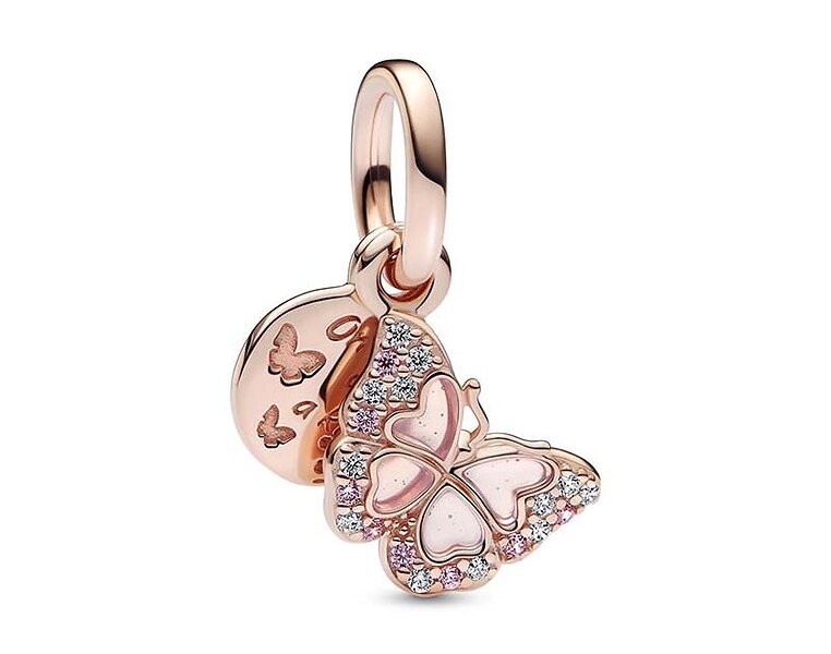 Pandora Dobbelt Vedhæng med Lyserød Sommerfugl & Citat