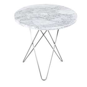 OX Denmarq Tall mini O sidobord o50 H50, rostfritt underrede vit marmor