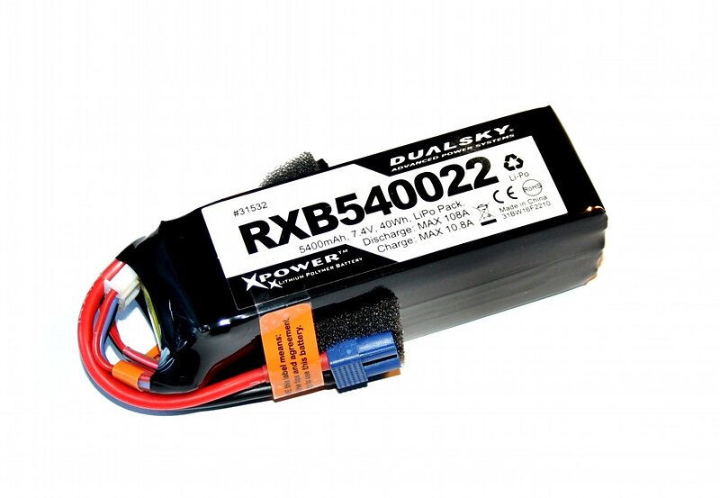 Dualsky 2s 5400mAh RX LiPo med mätare