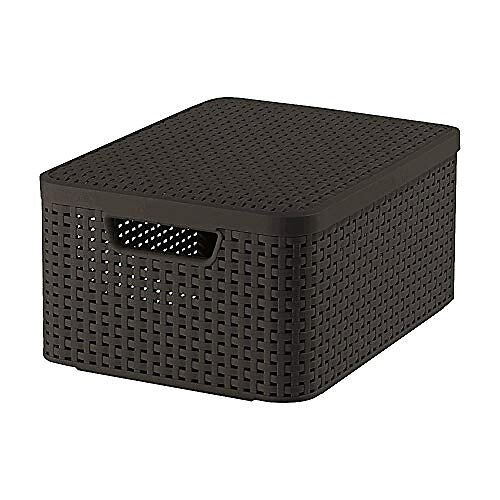 Curver Korg med lock Rattan Style mörk brun M