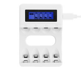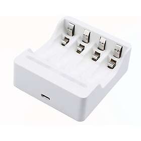 Deltaco USB Batterioplader til 4xAA/AAA Ni-MH/Ni-Cd Batterier, Hvid
