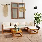 vidaXL Loungegrupp för trädgården med dyna gräddvit 6 delar akaciaträ