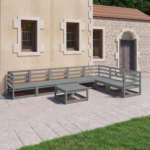 vidaXL Loungegrupp 8 delar grå massiv furu