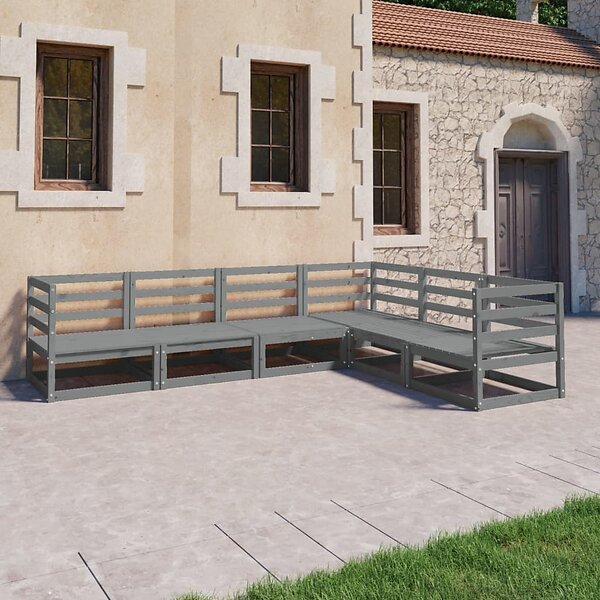 vidaXL Loungegrupp 6 delar grå massiv furu