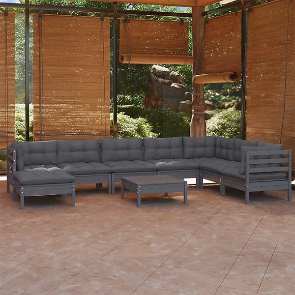 vidaXL Lounge Sæt 9 Dele med Hynder Grå Massiv Fyrretræ