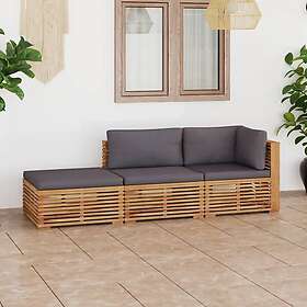 vidaXL Loungegrupp för trädgården dynor mörkgrå 3 delar massiv teak