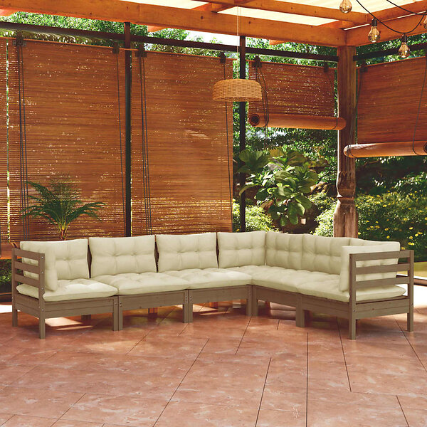 vidaXL Loungegrupp med dynor 6 delar honungsbrun massiv furu
